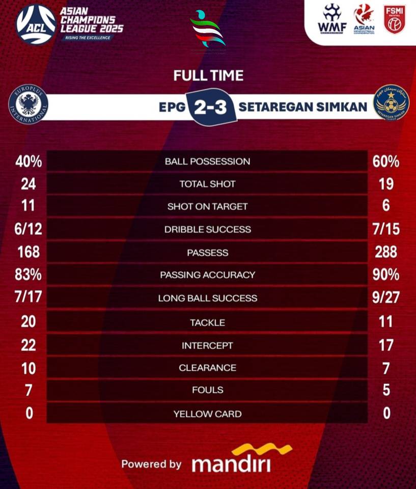 به گزارش روابط عمومی فدراسیون ورزش‌های همگانی، روز سوم از دور مقدماتی جام باشگاه‌های مینی‌فوتبال آسیا ۲۰۲۵ در اندونزی امروز(چهارشنبه) با برگزاری ۶ دیدار آغاز شد که در مهمترین بازی‌ از گروه B تیم ستارگان سیمَکان‌ جهرم از ساعت ۱۰:۳۰ به مصاف تیم یوروپلاس ژاپن رفت که در پایان این بازی پرگل و مهیج تیم ستارگان سیمَکان جهرم موفق شد با درخشش معراج‌ پورتقی در نهایت با نتیجه ۳ بر ۲ از سد حریف ژاپنی خود بگذرد تا نماینده ایران ضمن صدرنشینی در گروه B به عنوان مقتدرترین تیم راهی دور حذفی شود.